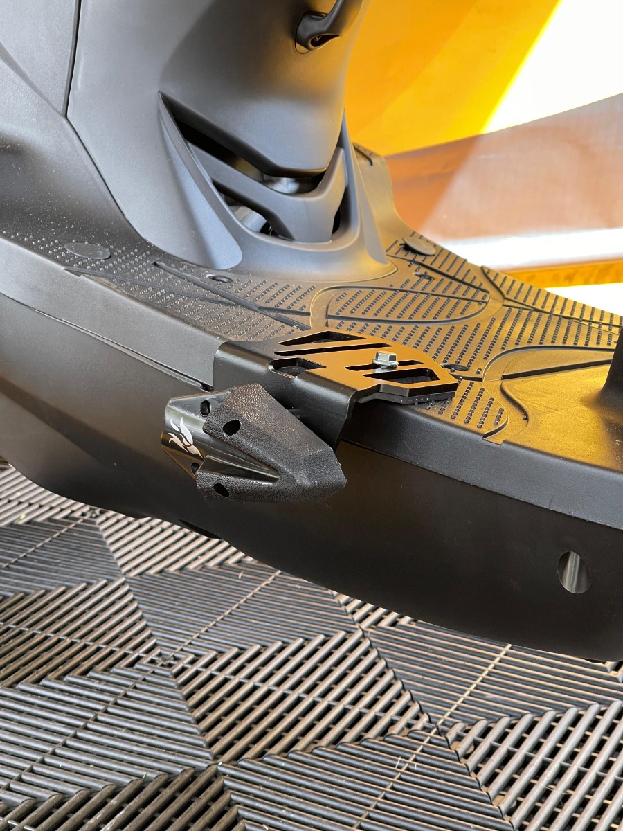 Las defensas son estructuras de metal diseñadas para absorber impactos y proteger las partes más vulnerables del scooter, como el carenado, el motor y los costados.