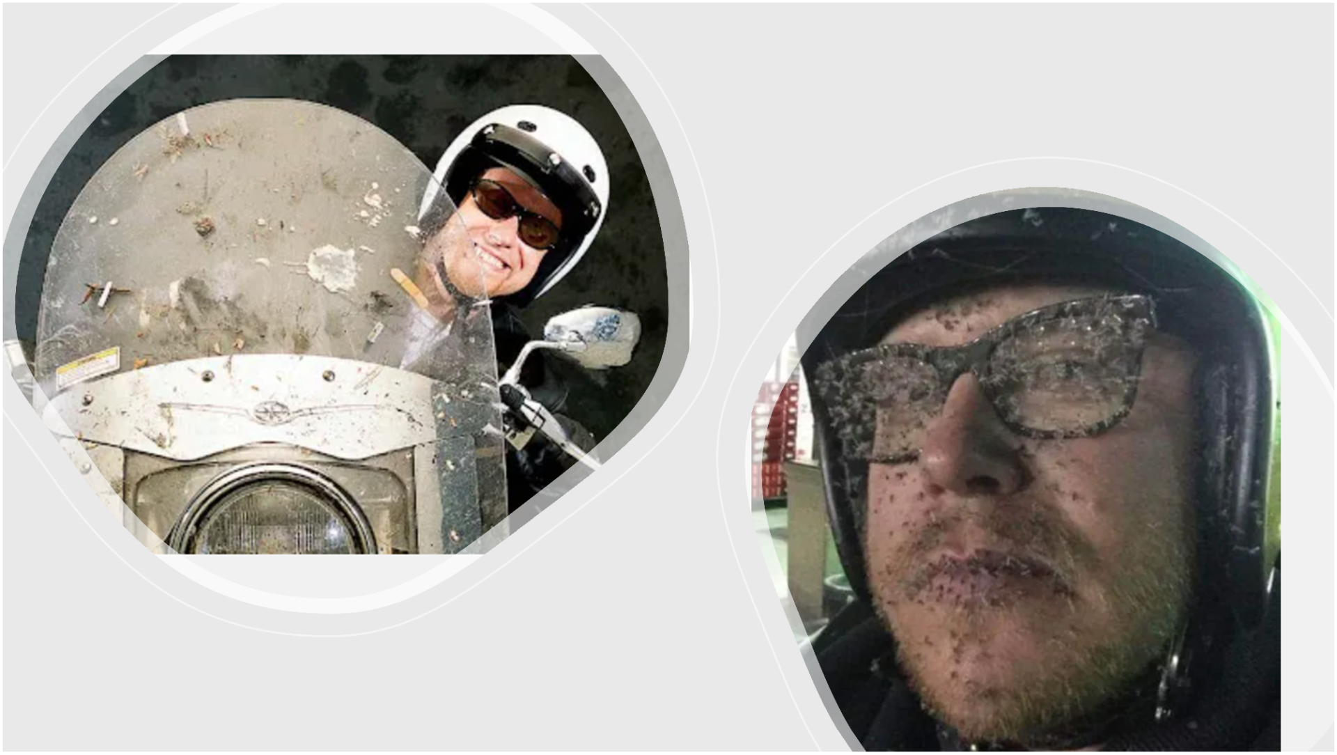 Además del viento, un parabrisas puede proteger de la lluvia, la suciedad, los insectos y pequeñas piedras que puedan golpear al conductor.