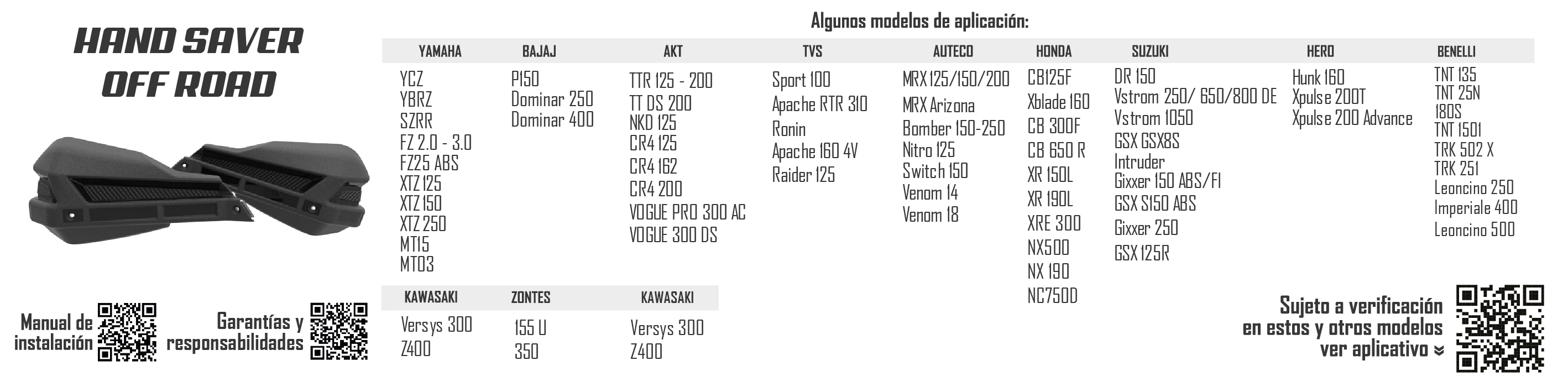 Aplica para las siguientes motos: