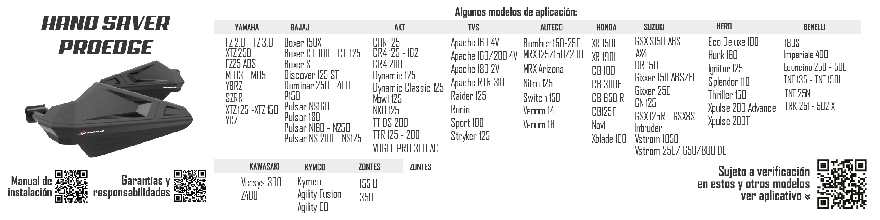 Aplica para las siguientes motos: